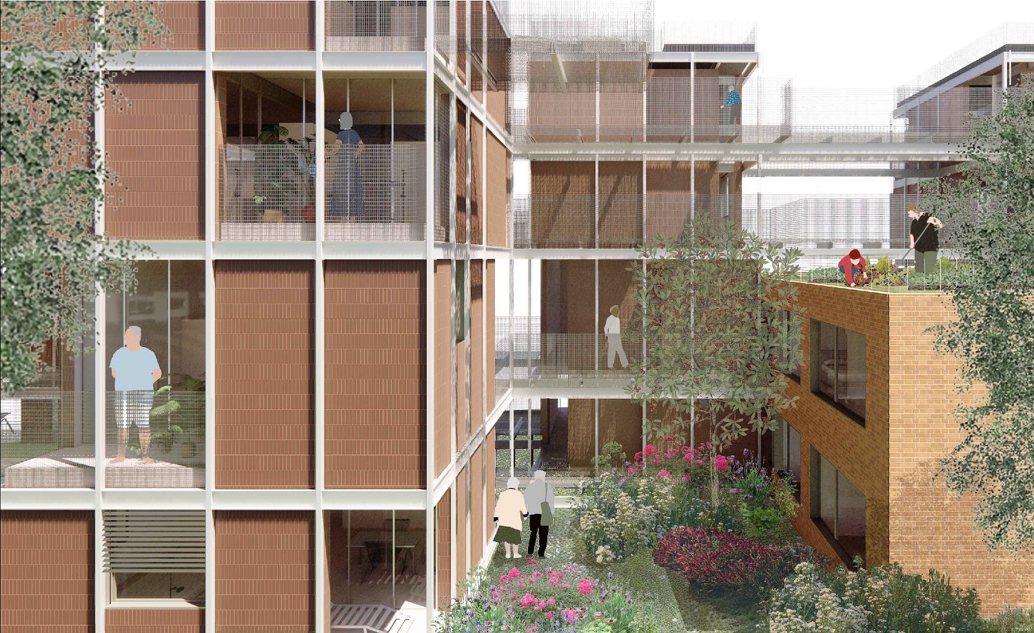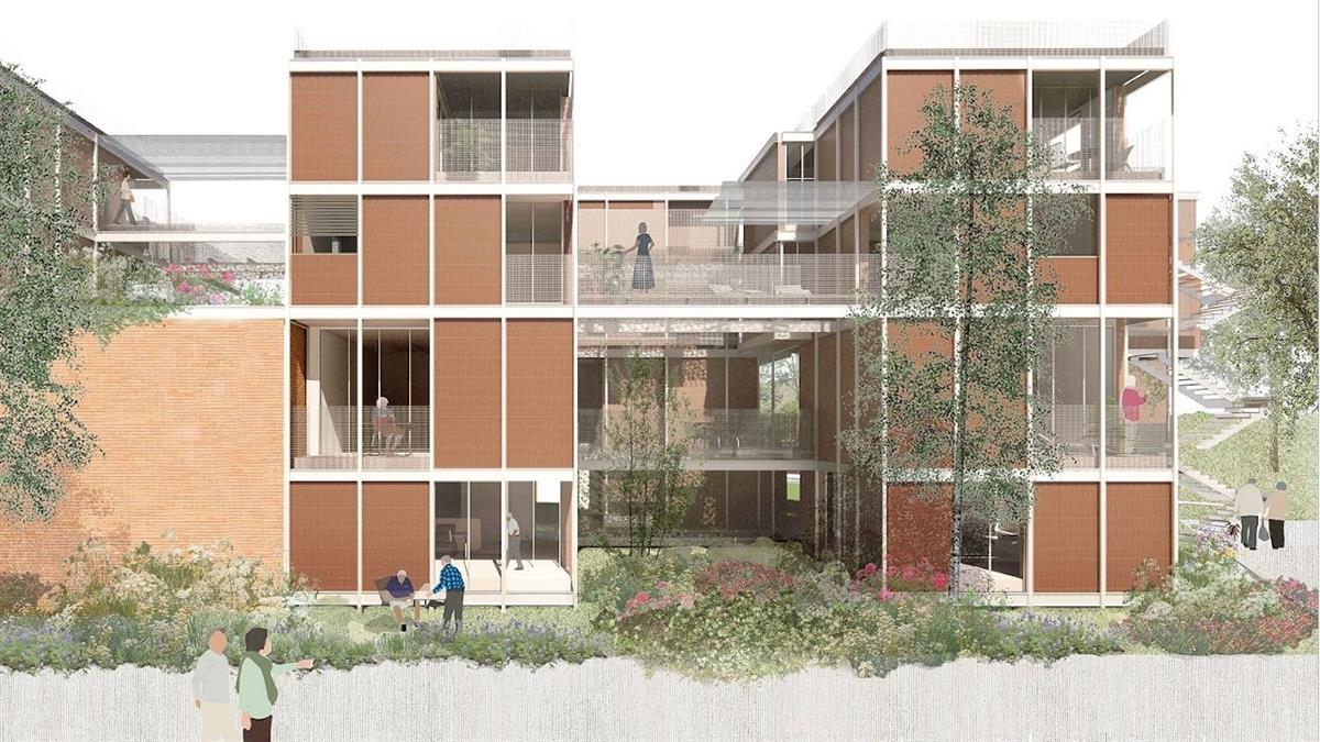 En efecto, los arquitectos de Entresitio, representados por César Jiménez de Tejada Benavides, María Hurtado de Mendoza Wahrolén y Borja Requena, proponen que este nuevo espacio de viviendas pilote alrededor de los dos edificios ya construidos, pero no renuncian a adaptar el entorno a las exigencias de hoy en día. En su diseño de presentación explican la importancia del ladrillo, no solo en los propios edificios construidos sino también a lo largo de la ciudad. Y a partir de ahí imaginan cómo podría ser el día a día de los inquilinos de los 26 apartamentos, una vida que no solo se desarrolla de paredes para adentro sino que se extiende por el barrio e incluso interactúa con la vida diaria de sus 'vecinos', los escolares del propio colegio con el que comparten calle.