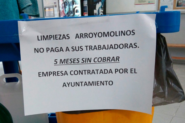 “Estamos desesperadas. Estamos pidiendo ayuda a todo el mundo porque la situación es insoportable”. Así comienza nuestra conversación con Carmen, una de las trabajadoras encargadas de la limpieza de los polideportivos de Fuenlabrada. Afirma que tanto ella, como seis compañeras más llevan más de cinco meses sin cobrar, algo que les ha llevado a una situación económica muy comprometida. “Trabajamos para una empresa contratada por el Ayuntamiento de Fuenlabrada, Anglón Servicios Integrales, y desde hace mucho tiempo tenemos problemas con ellos porque no nos pagaban a tiempo”, explica, “ahora, desde hace casi seis meses, no nos cogen el teléfono y ni siquiera nos pagan”. La empresa, contratada por el consistorio fuenlabreño, se encarga del servicio de limpieza de los polideportivos La Cueva, El Trigal, El Arroyo y Loranca de nuestra ciudad.