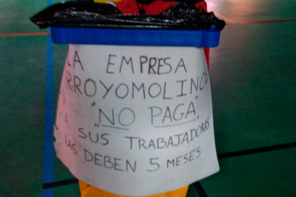 Afirma que tanto ella, como seis compañeras más llevan más de cinco meses sin cobrar, algo que les ha llevado a una situación económica muy comprometida. “Trabajamos para una empresa contratada por el Ayuntamiento de Fuenlabrada, Anglón Servicios Integrales, y desde hace mucho tiempo tenemos problemas con ellos porque no nos pagaban a tiempo”, explica, “ahora, desde hace casi seis meses, no nos cogen el teléfono y ni siquiera nos pagan”. La empresa, contratada por el consistorio fuenlabreño, se encarga del servicio de limpieza de los polideportivos La Cueva, El Trigal, El Arroyo y Loranca de nuestra ciudad.