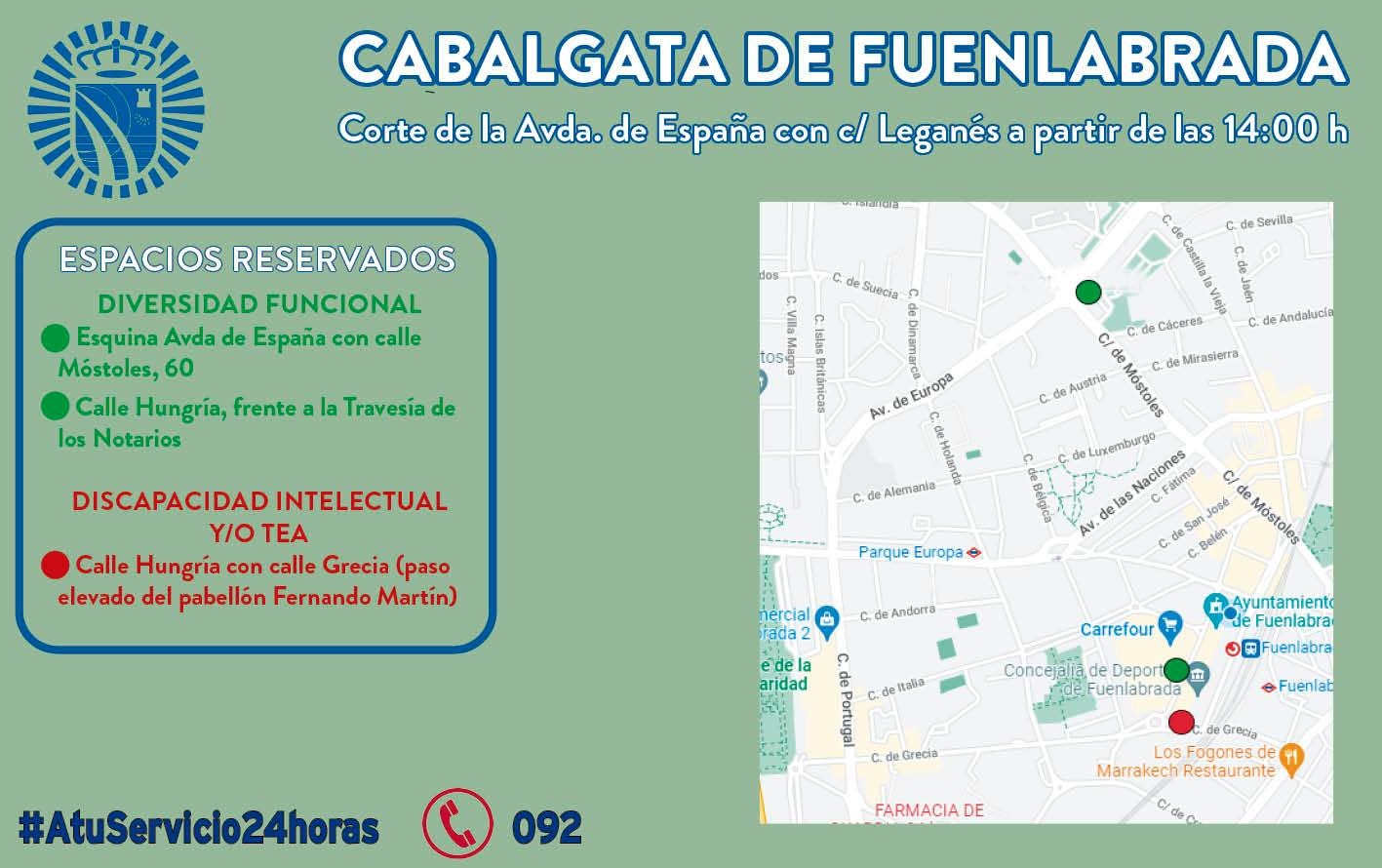 Para facilitar la movilidad en el casco urbano la Policía aconseja a los conductores y conductoras que tengan que entrar o salir de la ciudad que utilicen las calles Leganés y Luis Sauquillo o bien las circunvalaciones (M-506, avenida de la Hispanidad) evitando así las calles y avenidas por las que desfilará la comitiva real.