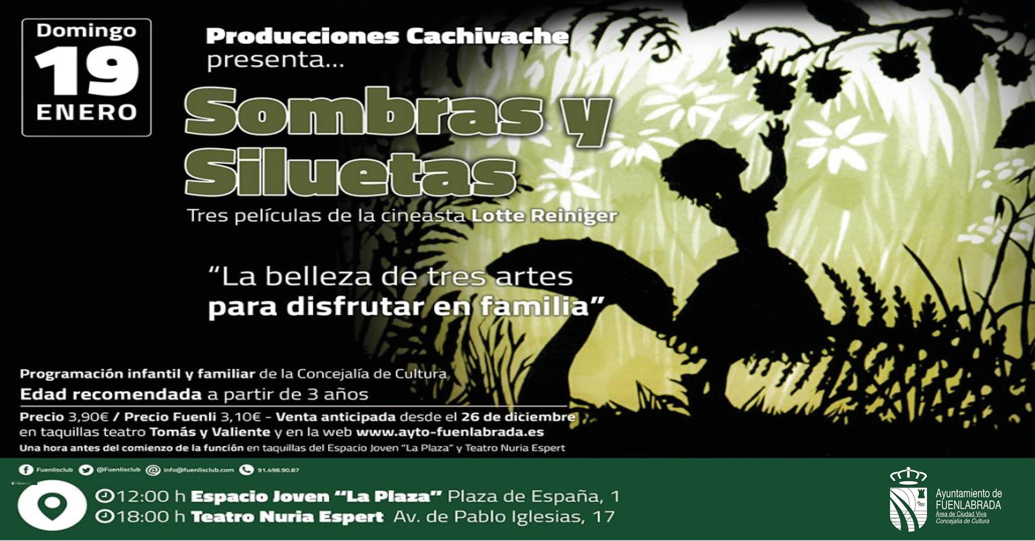 Un pulso narrativo plagado de magia es el que predomina en ‘Sombras y Siluetas’, espectáculo que trae ‘Producciones Cachivache’ a Fuenlabrada este fin de semana. El domingo, 19 de enero, el Espacio Joven ‘La Plaza’ acoge esta propuesta de ocio infantil a las 12:00 horas. Después, a las 18:00 horas, el Teatro Nuria Espert dará cabida al mismo espectáculo. El precio de la entrada es de 3,90 euros.