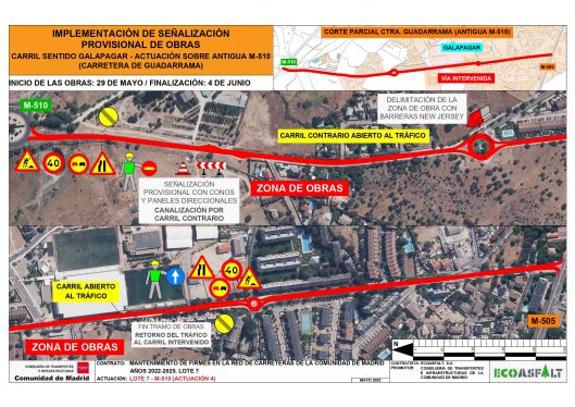 Antigua carretera M-510, entre la M-505 y la M-510, durante un periodo aproximado de 7 días, desde el 29 de mayo de 2023 hasta el 4 de junio de 2023.