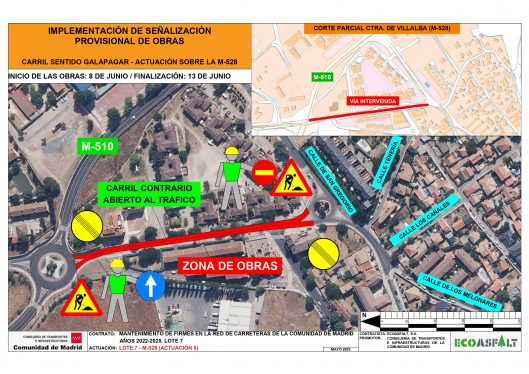 Carretera M-528, entre la M-510 y la carretera de Galapagar a La Navata, durante un periodo aproximado de 6 días, desde el 8 de junio hasta el 13 de junio de 2023.
