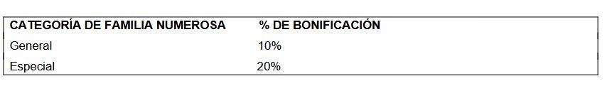 En cuanto a la tasa de basura, la bonificación a familias numerosas se aplicará sobre la cuota integra en función de la categoría de familia numerosa a la que pertenecen:
