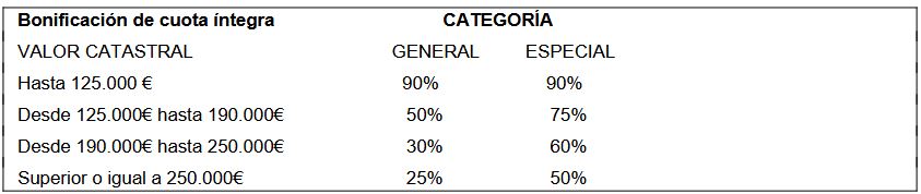 En el caso del IBI, la bonificación se aplicará en función de la categoría de familia numerosa a la que pertenecen y del valor catastral del inmueble en el que residan: