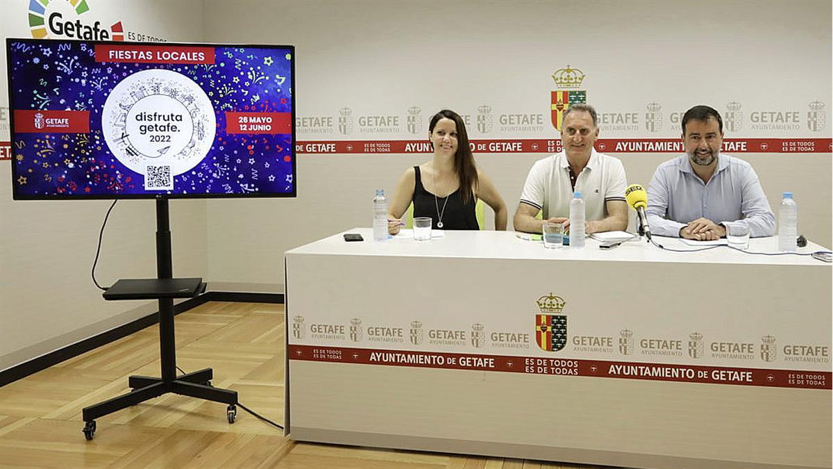 Han presentado estas Fiestas, el alcalde en Funciones, Herminio Vico, el concejal de Cultura, Luis Domínguez, y la segunda Teniente de Alcaldesa, Alba Leo. Vico ha hecho un llamamiento “a disfrutar de unas fiestas tan esperadas, con alegría y respeto por el descanso de los vecinos y la convivencia en positivo, para que Getafe vuelva a ser Getafe”.