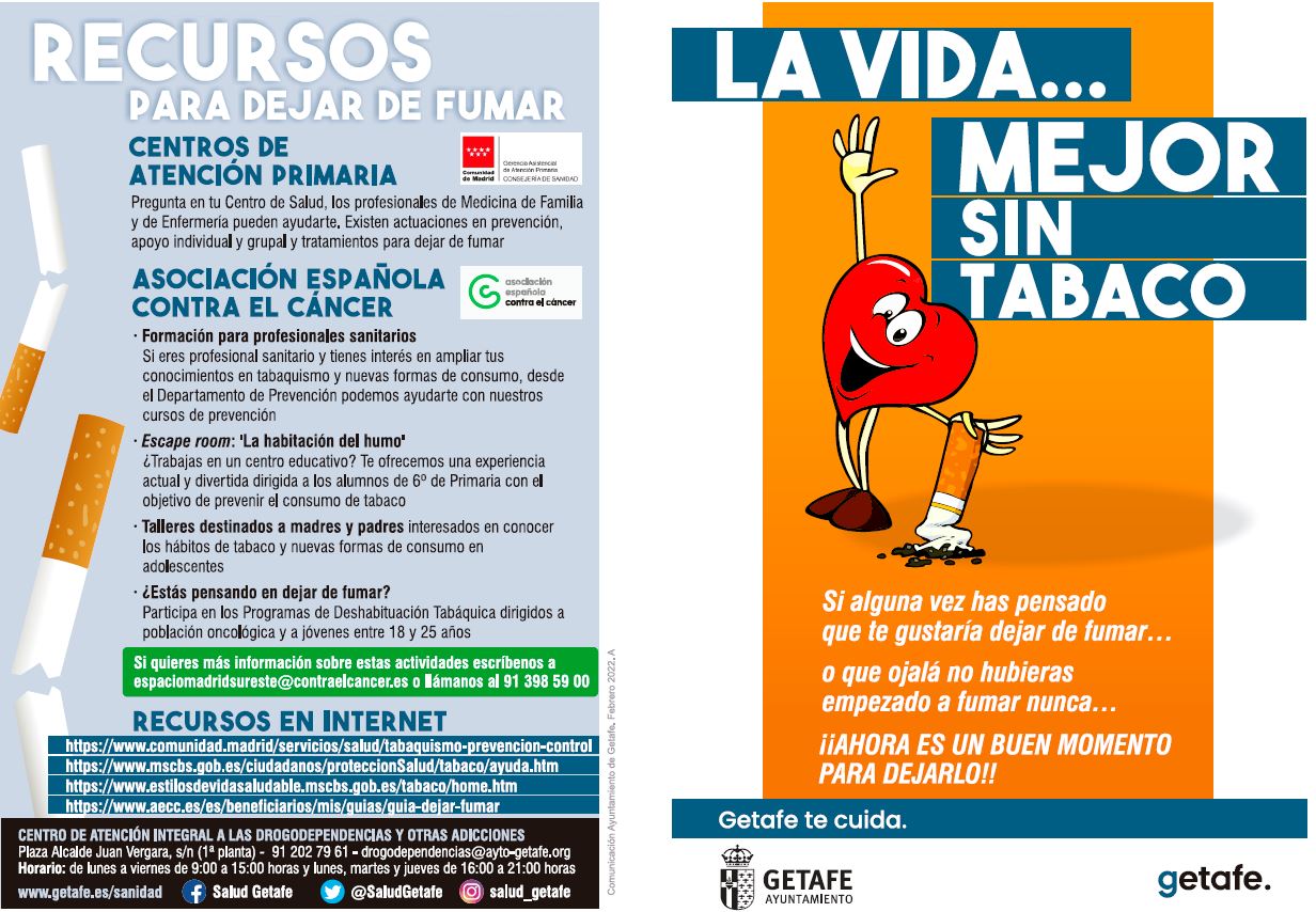 La campaña explica algunas de las informaciones erróneas ligadas al consumo de tabaco, y ofrece un listado de espacios web donde obtener información complementaria para dejar de fumar. Se presentan además las respuestas y acciones que se desarrollan desde las 3 entidades: Ayuntamiento de Getafe, Atención Primaria, y Asociación Española contra el Cáncer, que proponen desde actividades preventivas y de promoción de la salud hasta otras de carácter asistencial.
