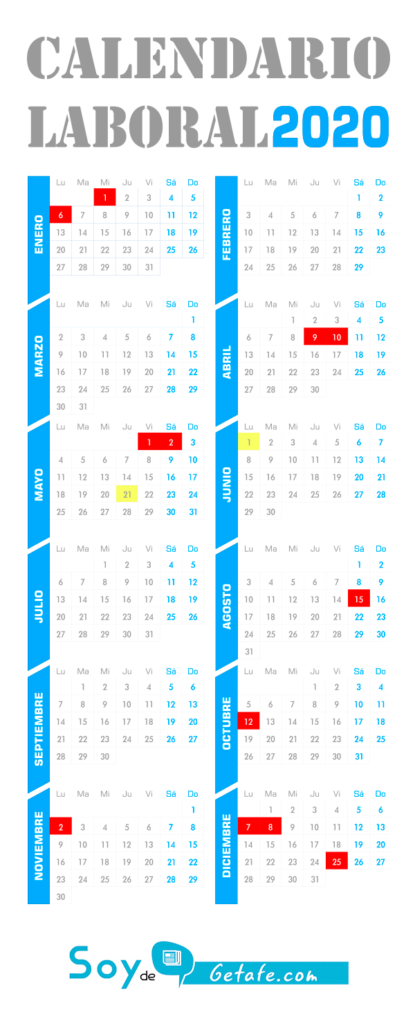 Hace unos días ya teníamos disponible el Calendario Laboral de la Comunidad de Madrid, y ahora ya disponemos de todos los días festivos de Getafe tras comunicar el Ayuntamiento de Getafe las fechas de nuestras Fiestas Patronales 2020.