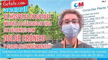 El Hospital Universitario de Getafe es un centro público de asistencia sanitaria especializada, dependiente de la Consejería de Sanidad de la Comunidad de Madrid, que atiende a una población de 230.000 personas. Desde su apertura en 1991, se ha consolidado como centro de referencia en áreas asistenciales de gran complejidad, como la asistencia a grandes quemados, la Unidad de Columna, la Unidad de Obesidad Mórbida y la osteogénesis imperfecta, entre otras, así como por su cercanía y trato a pacientes y usuarios, con una gran aceptación en su comunidad.