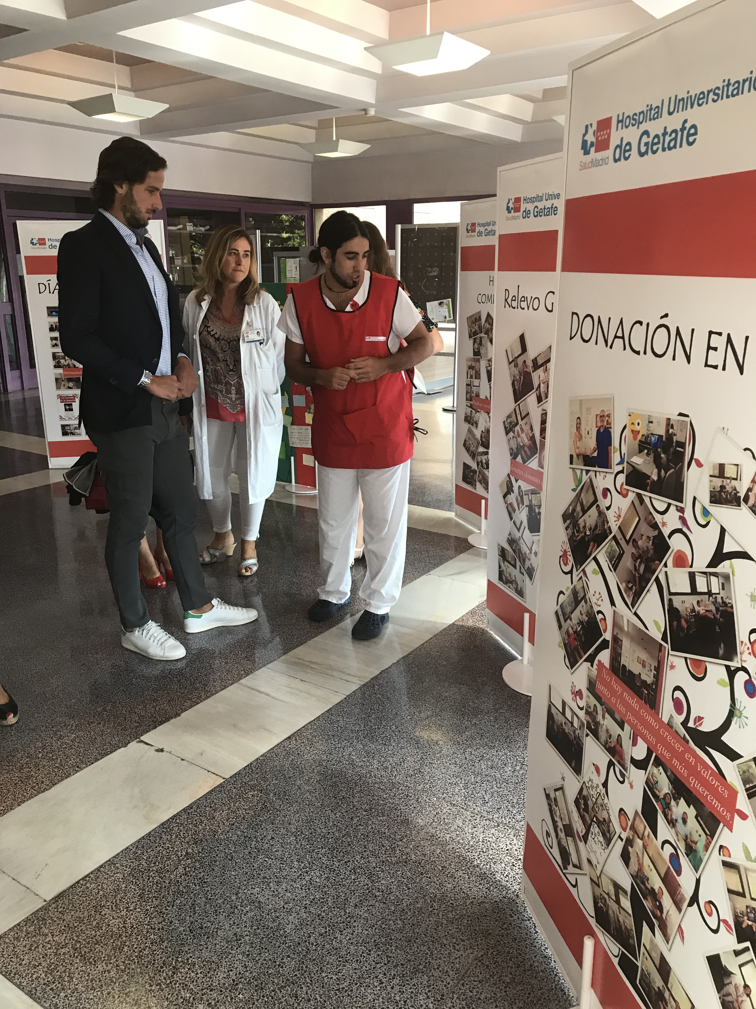 El tenista Feliciano López ha visitado el Hospital de Getafe para ver la exposición “Los veranos de la donación” que recoge todas las acciones realizadas por los profesionales de Banco de Sangre durante julio y agosto para fomentar este gesto altruista entre los ciudadanos.