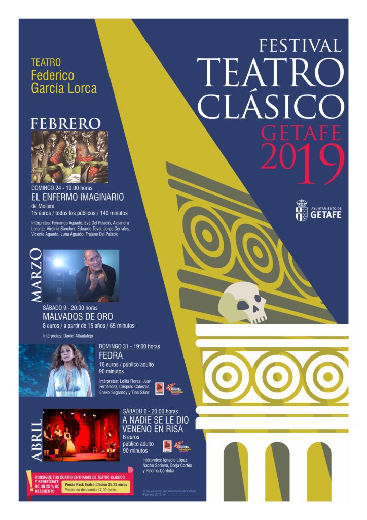 El Festival de Teatro que se estrena el próximo domingo se extenderá hasta el 6 de abril, dejándonos títulos como "Malvados de Oro", "Fedra" y "A nadie se le dio veneno en risa". Destaca "Fedra" con la actuación de Lolita Flores el domingo 31 de marzo. ¡No te lo pierdas!