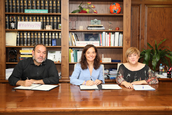 Getafe firma por primera vez un convenio de colaboración con la Comisión Española de Ayuda al Refugiado (CEAR). La firma entre la alcaldesa, Sara Hernández y el coordinador territorial de CEAR Francisco Garrido, ha tenido lugar en el Ayuntamiento de Getafe. A la firma de este convenio también han asistido la concejala de Cooperación al Desarrollo y Convivencia, Raquel Alcázar; Mónica López, directora de programas de CEAR y Marichu Mayoral, psicóloga, ambas antiguas directoras del centro, junto al coordinador de los proyectos ICI de CEAR en Getafe, Juanma Villalón.