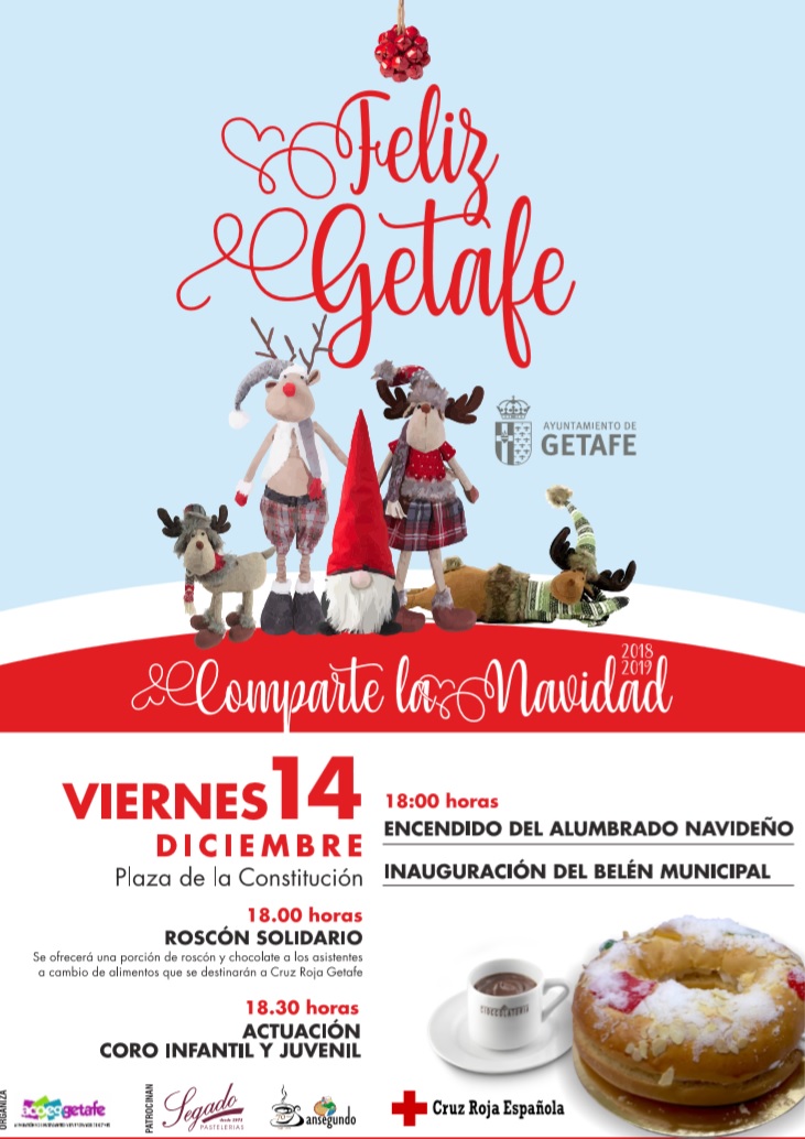 Y como suele ser tradición en nuestro municipio, el día de la inauguración de la navidad, se celebrará el Roscón Solidario, organizado por ACOEG, a partir de las 18:00 horas, donde se podrá disfrutar de roscón y chocolate a cambio de alimentos destinados a Cruz Roja Getafe, un momento que será acompañado con las actuaciones del Coro Infantil y Juvenil de Getafe.
