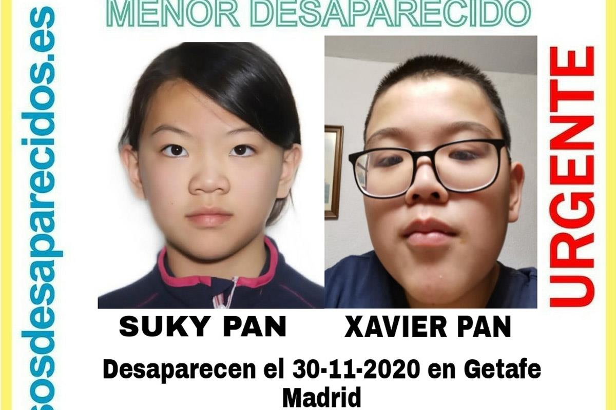 Suky Pan y Xavier Pan de 13 y 12 años respectivamente, tienen el pelo negro y ojos marrores. Suky llevaba una falda con medias blancas y mochila en el momento de su desaparición y Xavier vestía con chándal Adidas. Lleva gafas y también llevaba su mochila.