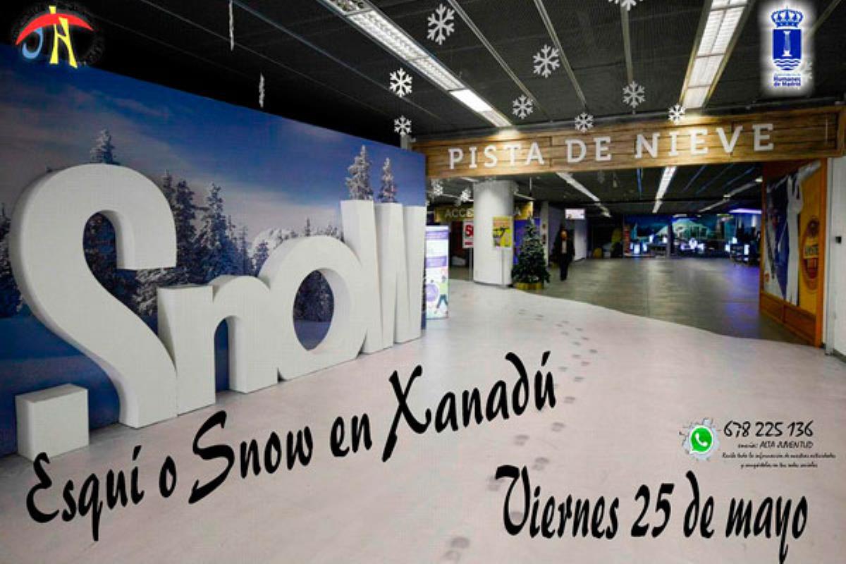 Para la tarde del 25 de mayo se ha programado en nuestro municipio una actividad de esquí o snow que se realizará en el Centro Comercial Xanadú. El precio será de 12 euros por persona y en él se incluirán: el transporte (ida y vuelta), los monitores acompañantes, el material técnico, la vestimenta y las 2 horas que se destinarán para esquiar o practicar snow. Sin embargo, se requerirá que todos los asistentes vayan provistos de guantes.