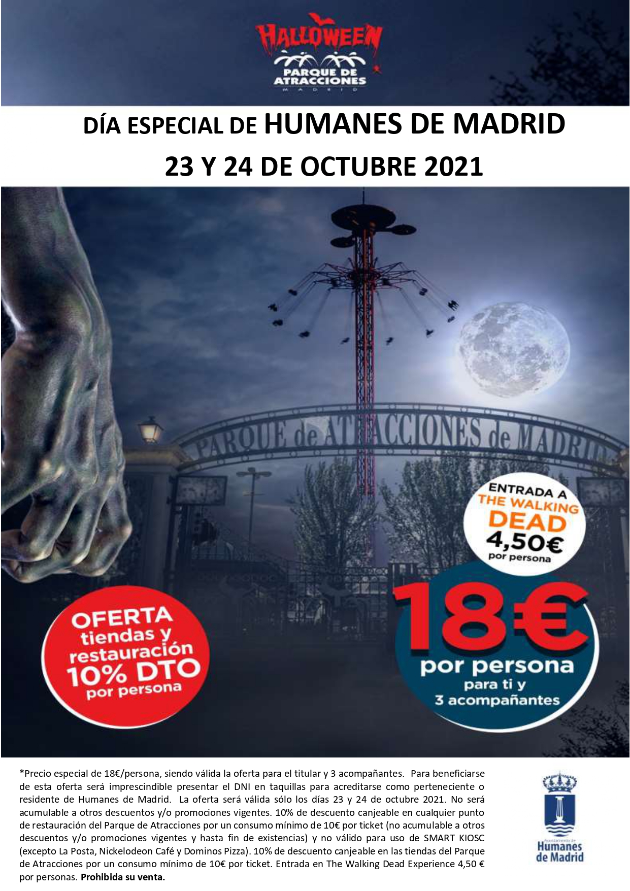 El Parque de Atracciones de Madrid ofrece descuentos especiales durante este fin de semana para los vecinos de Humanes de Madrid como celebración del día del municipio. Para beneficiarse de esta oferta será imprescindible presentar el DNI en taquillas para acreditar que resides en Humanes de Madrid.