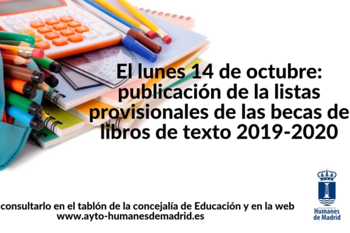 La concejalía de Educación ha informado que las listas provisionales de las becas de libros 2019-2020 serán publicadas el próximo lunes 14 de octubre, como marcan las bases de la convocatoria cuyos trámites se iniciaron en septiembre.