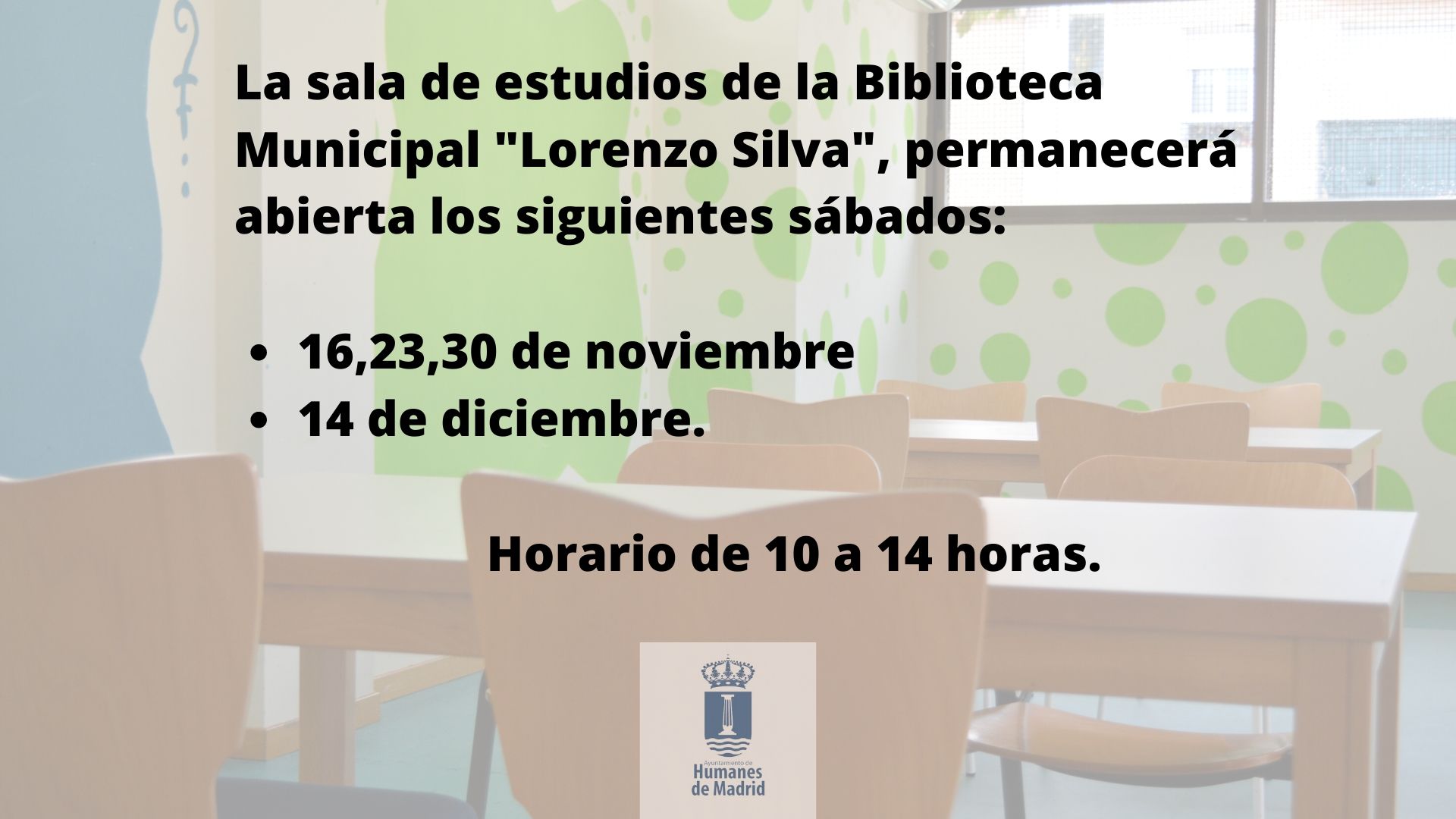 La temporada de exámenes quedó oficialmente inaugurada este sábado 16 de noviembre, con la apertura de la biblioteca municipal `Lorenzo Silva´. Y es que, la Concejalía de Cultura abrirá los sábados 23 y 30 de noviembre y 14 de diciembre, de 10:00 a 14:00 horas, para que los y las estudiantes puedan acudir a estudiar.