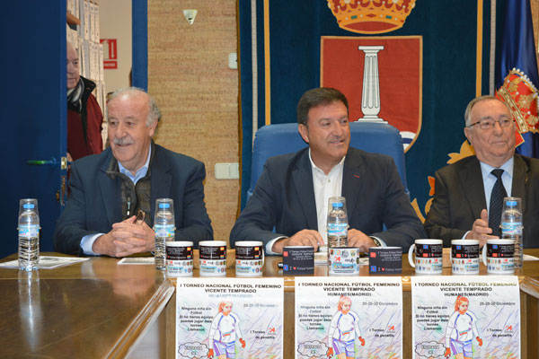 El alcalde de Humanes de Madrid, José Antonio Sánchez, el ex seleccionador nacional de fútbol, Vicente del Bosque y el ex presidente de la real Federación de Fútbol de Madrid, Vicente Temprado, fueron las personalidades que presentaron el I Torneo Nacional de Fútbol Femenino 'Vicente Temprado'. El Complejo Deportivo Municipal “Vicente Temprado” de la localidad de Humanes albergará este prometedor torneo que acogerá alrededor de una treintena de equipos femeninos de las categorías Alevín, Infantil y Juvenil, los dias 28, 29 y 30 de diciembre.