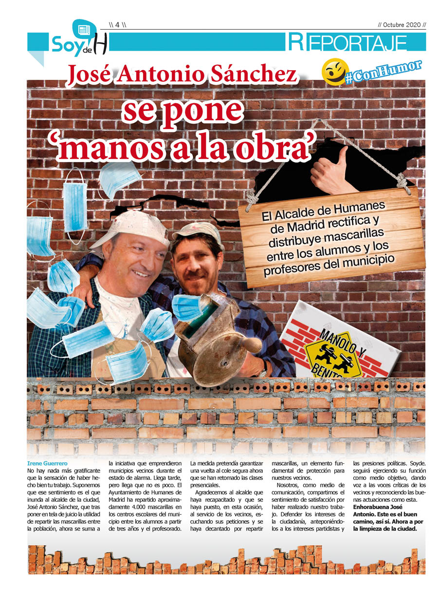 No hay nada más gratificante que la sensación de haber hecho bien tu trabajo. Suponemos que ese sentimiento es el que inunda al alcalde de la ciudad, José Antonio Sánchez, que tras poner en tela de juicio la utilidad de repartir las mascarillas entre la población, ahora se suma a la iniciativa que emprendieron municipios vecinos durante el estado de alarma. Llega tarde, pero llega que no es poco. El Ayuntamiento de Humanes de Madrid ha repartido aproximadamente 4.000 mascarillas en los centros escolares del municipio entre los alumnos a partir de tres años y el profesorado. La medida pretendía garantizar una vuelta al cole segura ahora que se han retomado las clases presenciales.