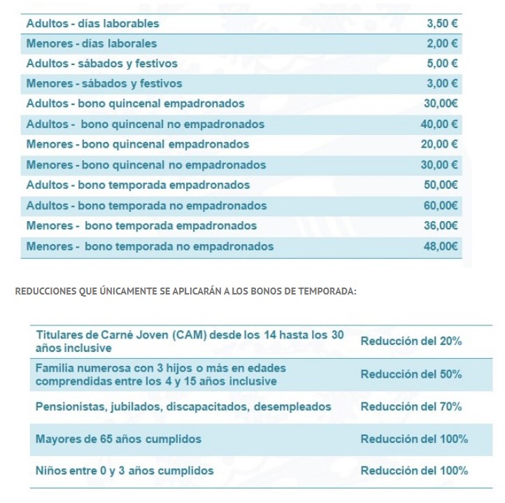 Y en el siguiente cuadro se pueden consultar los precios: