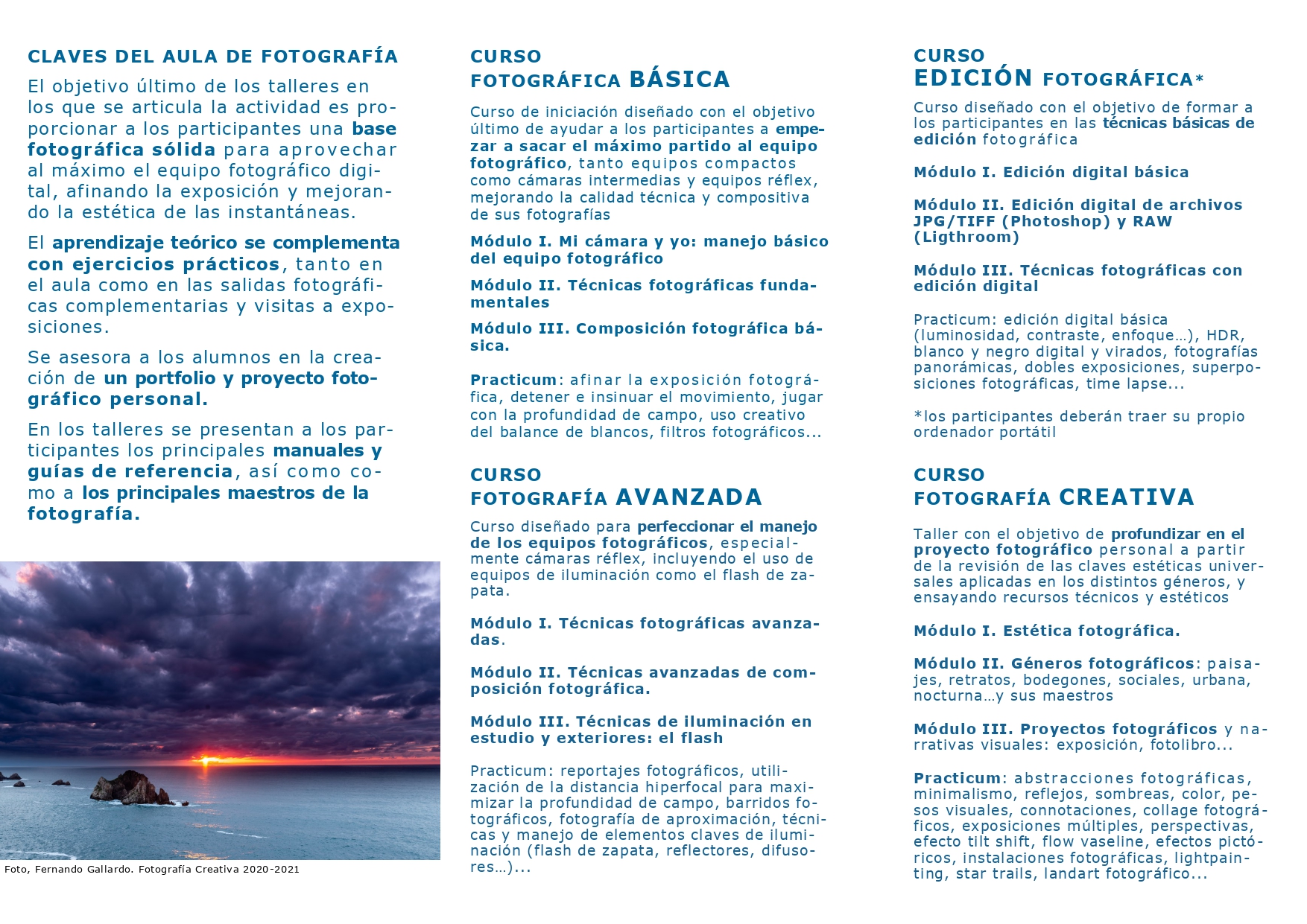 • Fotografía Avanzada: jueves de 20.15 a 21.30 horas