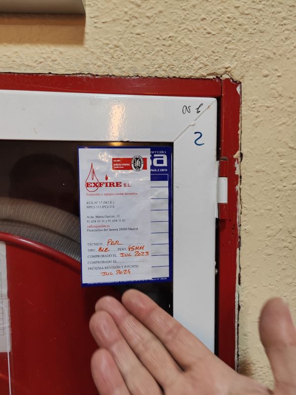 Las pegatinas de mantenimiento preventivo no indican la situación real del estado de las mangueras contra incendios del Centro Educativo