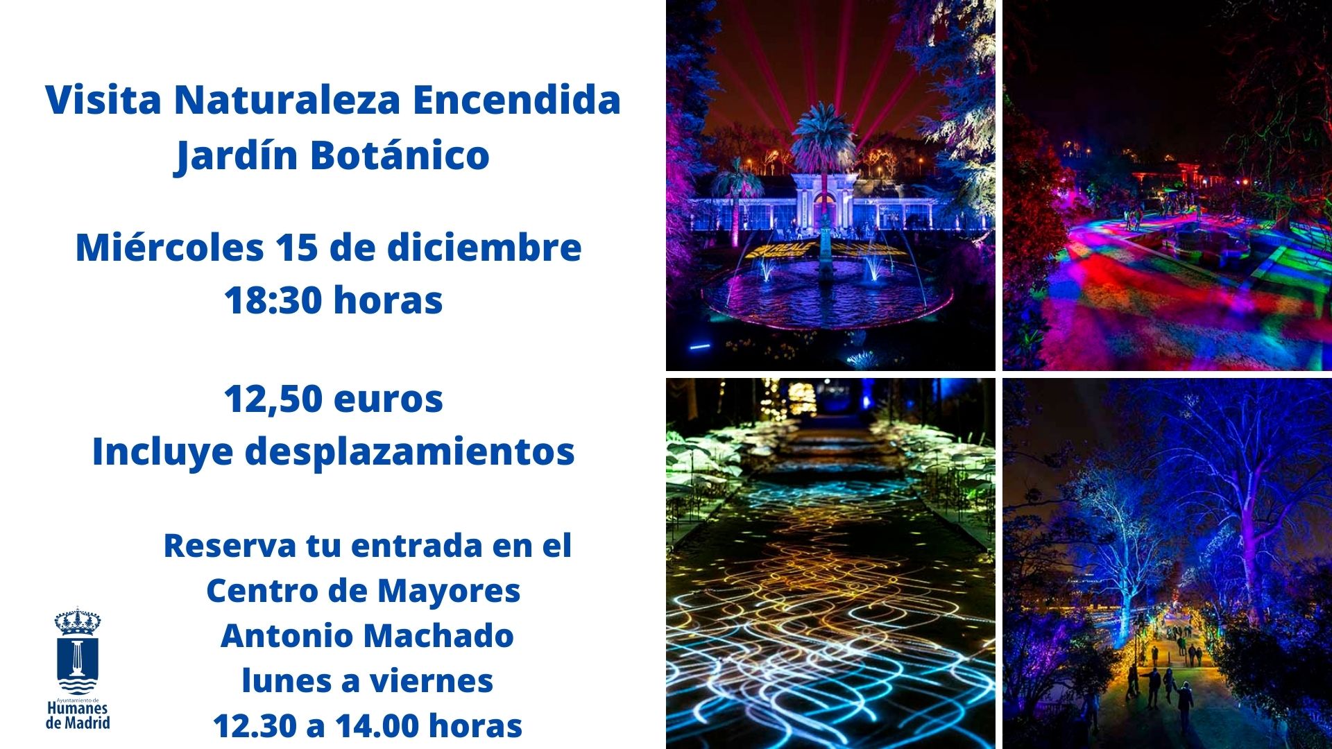 La Concejalía de Mayores ha organizado una visita para ver el espectáculo de luces del Jardín Botánico el miércoles 15 de diciembre a las 18:30 horas. Está prevista la salida en autobús desde la calle Cañada y Vicente Aleixandre sobre las 16:00 horas.