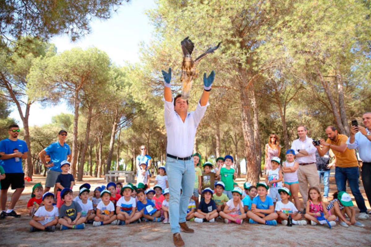 Las Rozas da la bienvenida a cuatro nuevos vecinos muy especiales de la familia de las aves rapaces. La Dehesa de Navalcarbón será, desde hoy, su particular hogar. Los pequeños del municipio, participantes en el campamento deportivo de Navalcarbón, junto al primer edil, José de la Uz, y los concejales Ricardo Riquelme y Juan Cabrera, han puesto en libertad a dos cernícalos y dos ratoneros criados en el Centro de Recuperación de Animales de la Comunidad de Madrid en la Dehesa de Navalcarbón. Bautizados por los alumnos del campamento como Ana, María, Juan y Carbón, fueron entregados a la libertad en un paraje sin igual.