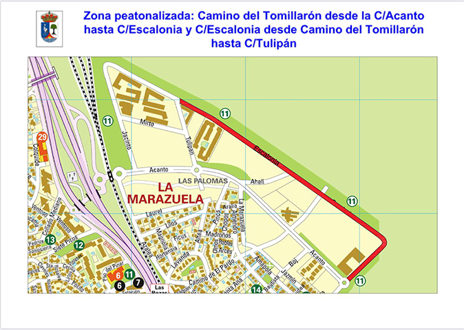 En concreto se trata de las avenidas del Retamar y de Navalcarbón, en sentido ascendente, desde la plaza de la Concordia hasta la calle Samuel Bronston, que supone un tramo de 2 km.; la avenida de España en sentido descendente, desde la calle Comunidad de Andalucía hasta la calle Comunidad de Aragón, con una longitud de 700 m. y las calles Camino de Ayuntamiento de Las Rozas de Madrid Tomillarón y Escalonia, en La Marazuela, que añaden 1,350 km. más a la distancia total que será peatonalizada.