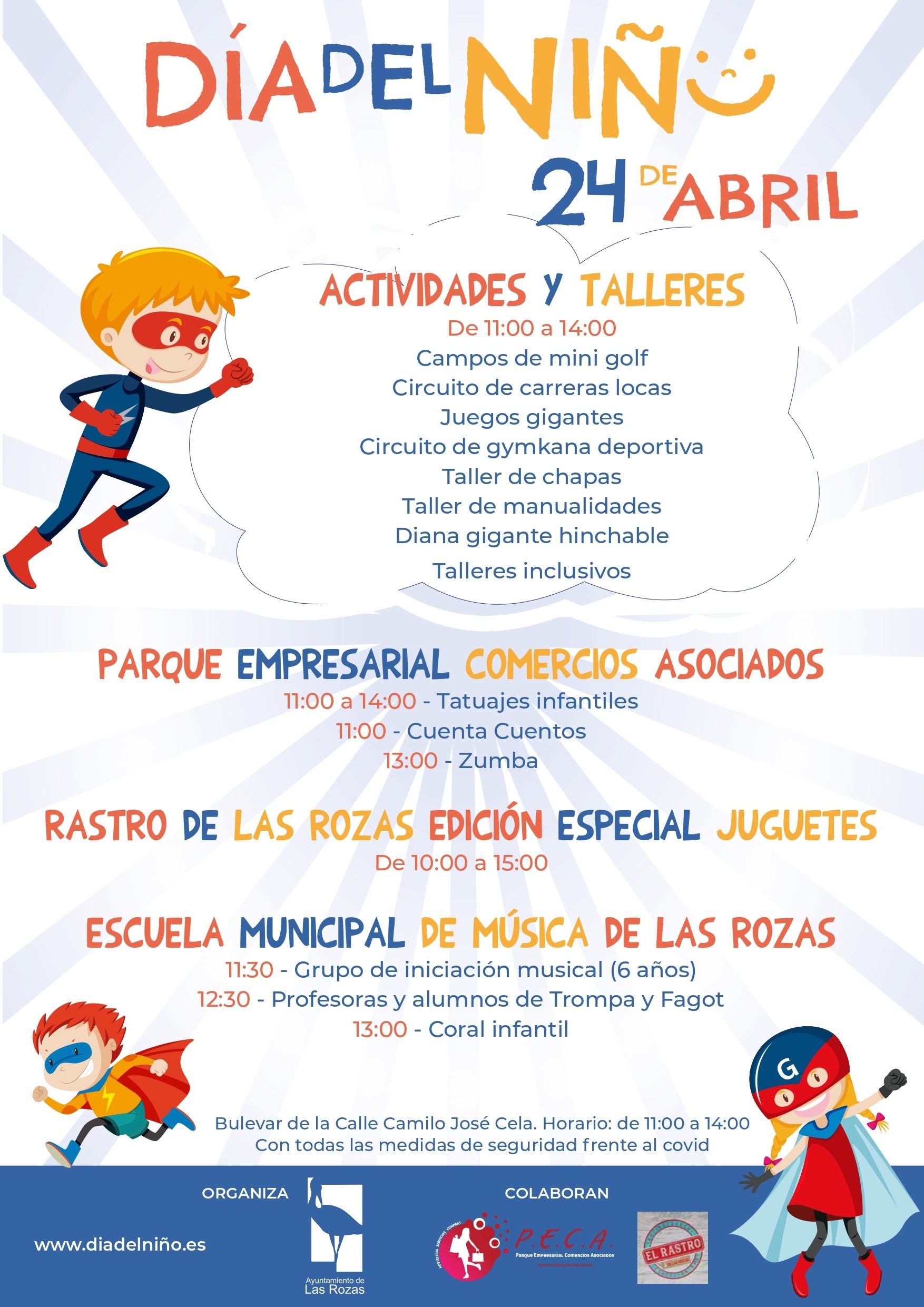 Se celebrará el 24 de abril en el Parque Empresarial de Las Rozas. Todas las actividades serán gratuitas, e irá especialmente dedicado a los niños y niñas del municipio rozeño. El Ayuntamiento a través de este evento, quiere reconocer a los niños y niñas como factor determinante en el freno de la expansión del coronavirus. Para participar en las actividades, las inscripciones se realizarán en el momento mediante un registro de los participantes a través de bandas temporales con nombre y contacto, para poder alertar en el caso de que haya un positivo COVID.