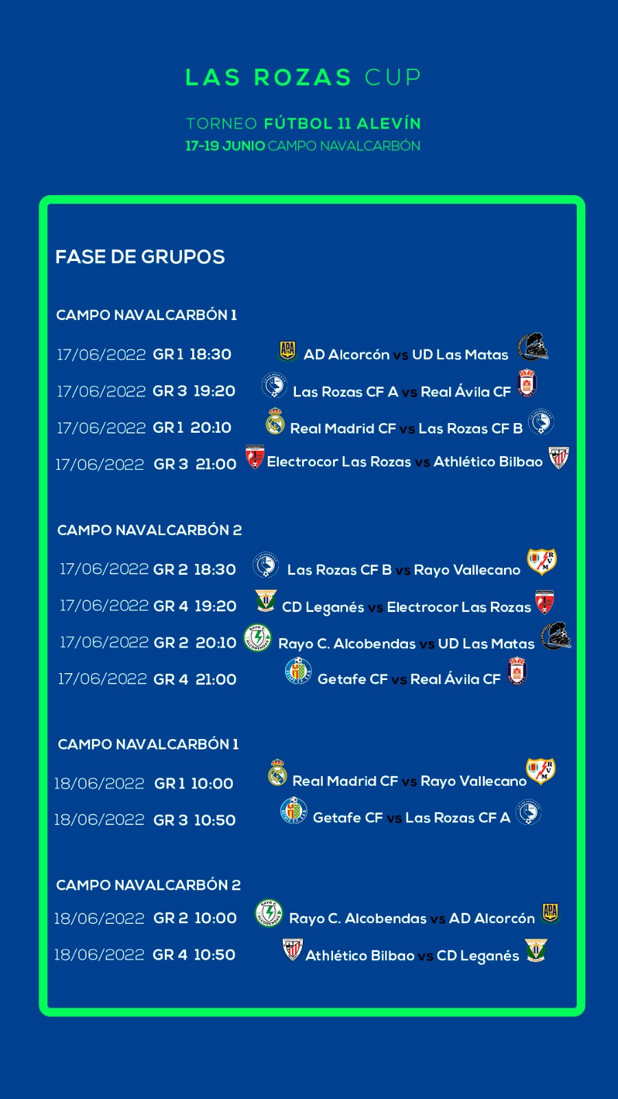 Será en Navalcarbón 1 y Navalcarbón 2 , en la categoría Alevín F11 masculina