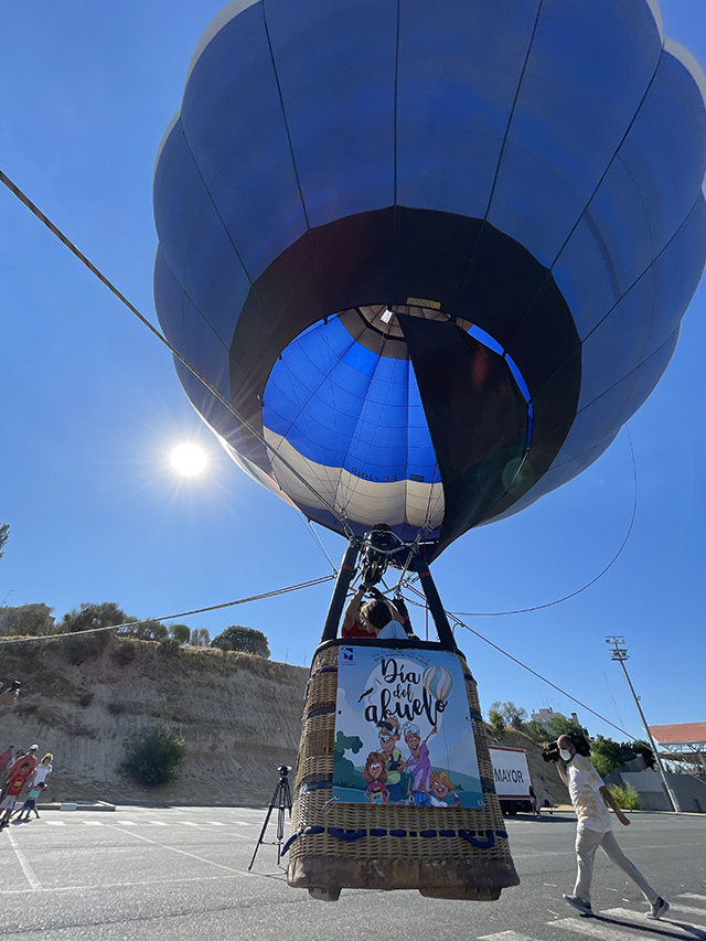 La agenda de actividades se puso en marcha a primera hora en el parking de la plaza multiusos, donde se elevó un globo aerostático cautivo al que han podido subirse todos los niños asistentes. Acompañados de sus abuelos, han podido disfrutar de una experiencia única y conocer su ciudad desde las alturas.