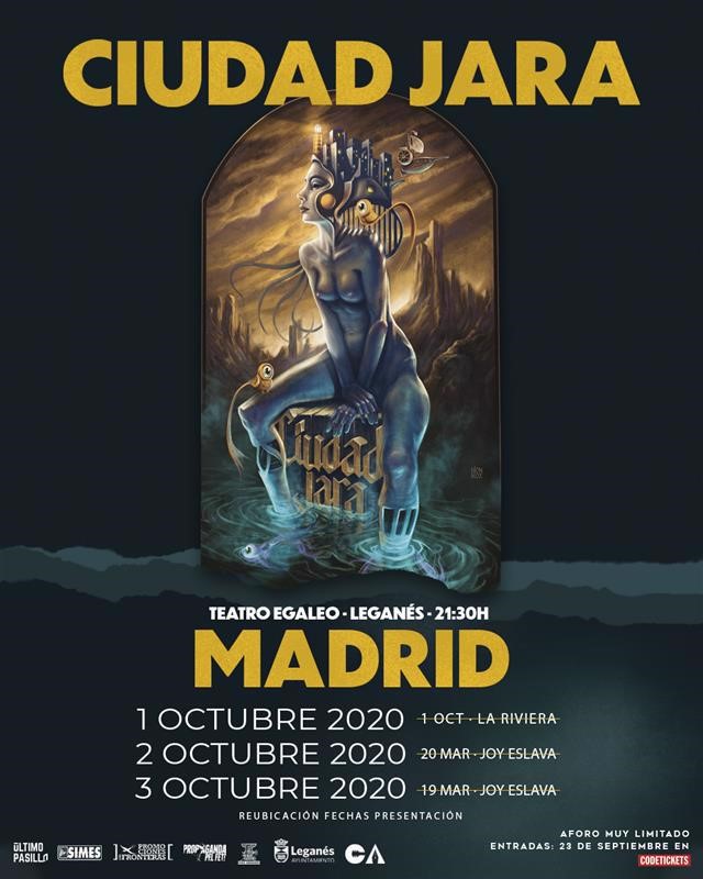 Leganés calienta motores para recibir la visita de Ciudad Jara. Tras agotar sus seis conciertos consecutivos en Valencia y su presentación en Barcelona, la banda anunció el traslado de su presentación en la capital al Teatro Egaleo de Leganés.