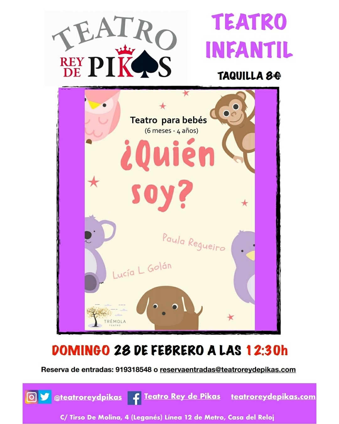 Por otro lado, el día 28 de febrero a las 12:30 el Teatro acoge la obra para bebés ‘¿Quién soy?’, donde los bebés podrán descubrir todas las cosas que tienen a su alrededor, a través de diferentes elementos sensoriales como ovillos de lana, burbujas de jabón, confenti, instrumentos y sonidos, entre otras muchas cosas.
