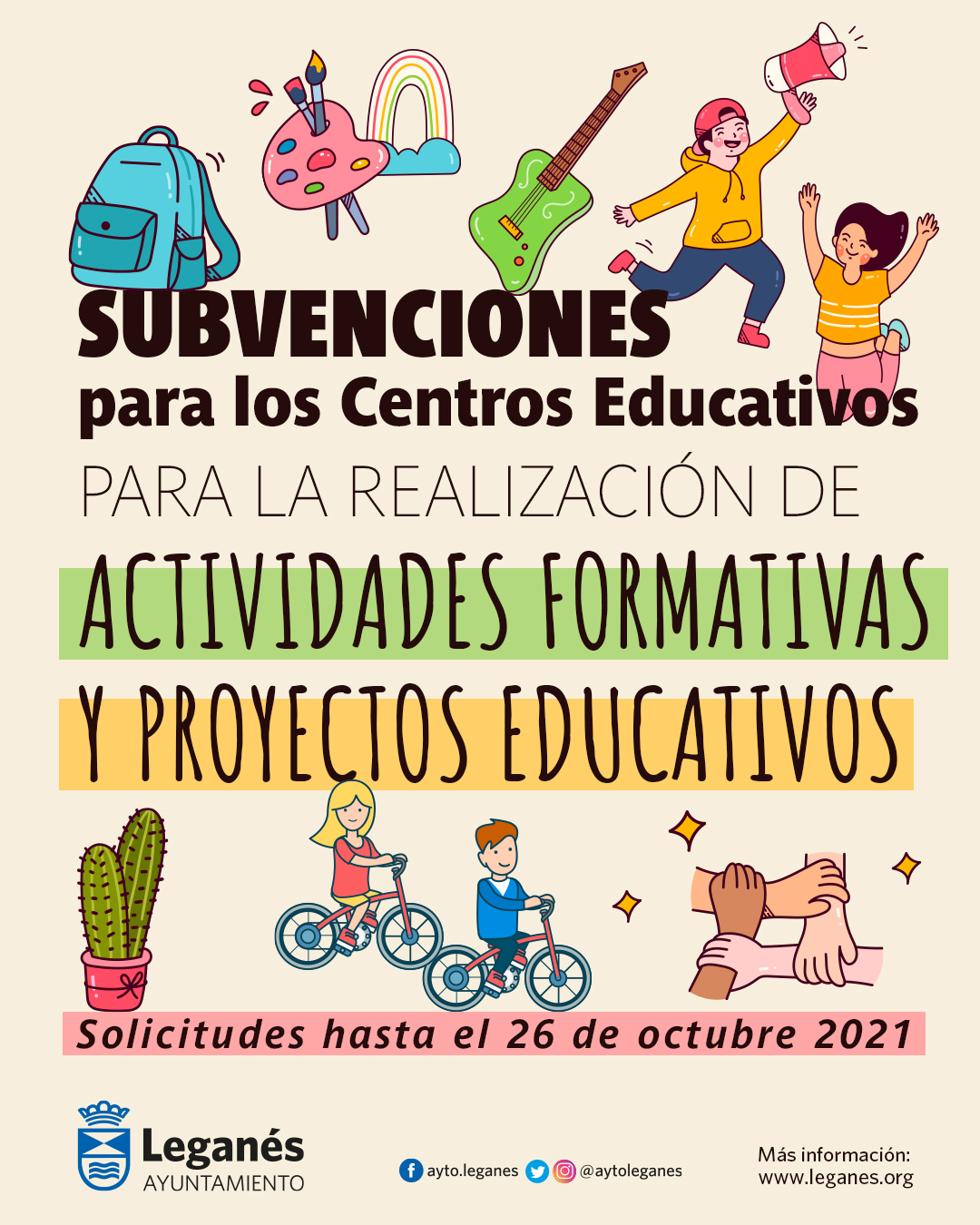 La Concejalía de Educación del Ayuntamiento de Leganés destina 500.000 euros para la subvención de proyectos educativos y actividades formativas a través de dos convocatorias de subvenciones en centros públicos y concertados de Educación Infantil, Primaria, Secundaria, Especial y de Adultos durante el curso escolar 2021-2022. El plazo de presentación de solicitudes se encuentra abierto hasta el próximo martes 26 de octubre. Se trata del proyecto Sócrates, dotado con 400.000 euros, y el proyecto Hipatia, que cuenta con una inversión 100.000 euros.