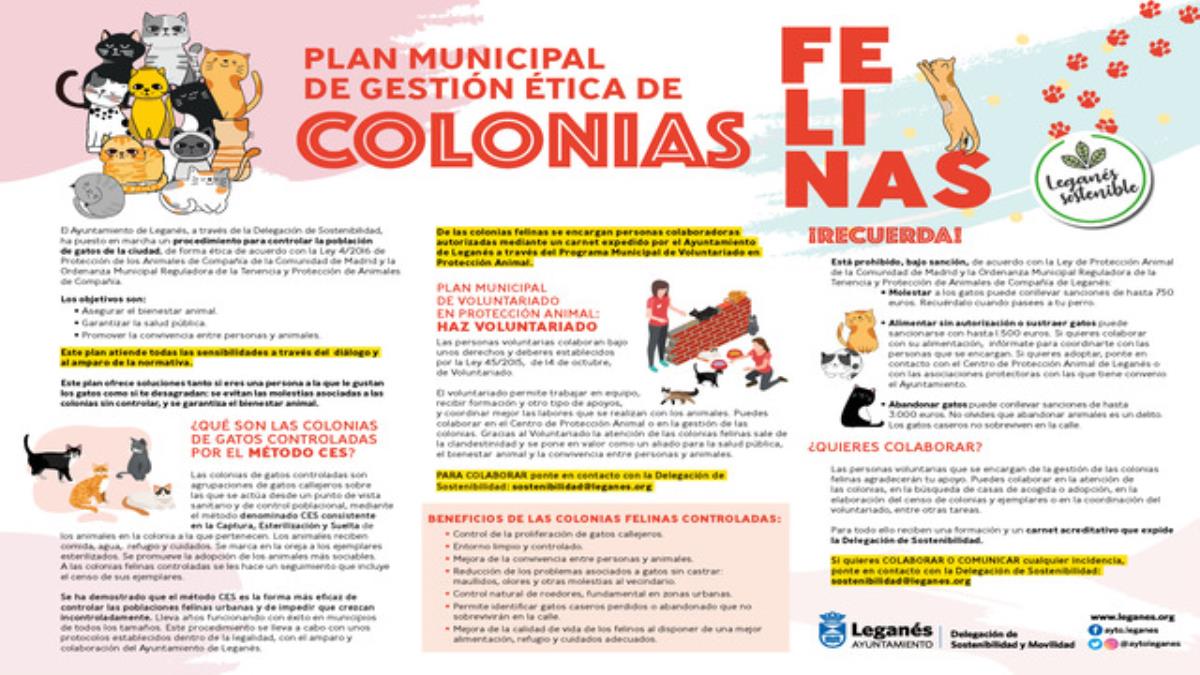 El Ayuntamiento de Leganés ha puesto en marcha un Plan Municipal de Gestión Ética de las Colonias Felinas con el objetivo de asegurar el bienestar animal, garantizar la salud pública y promover la convivencia entre personas y animales.