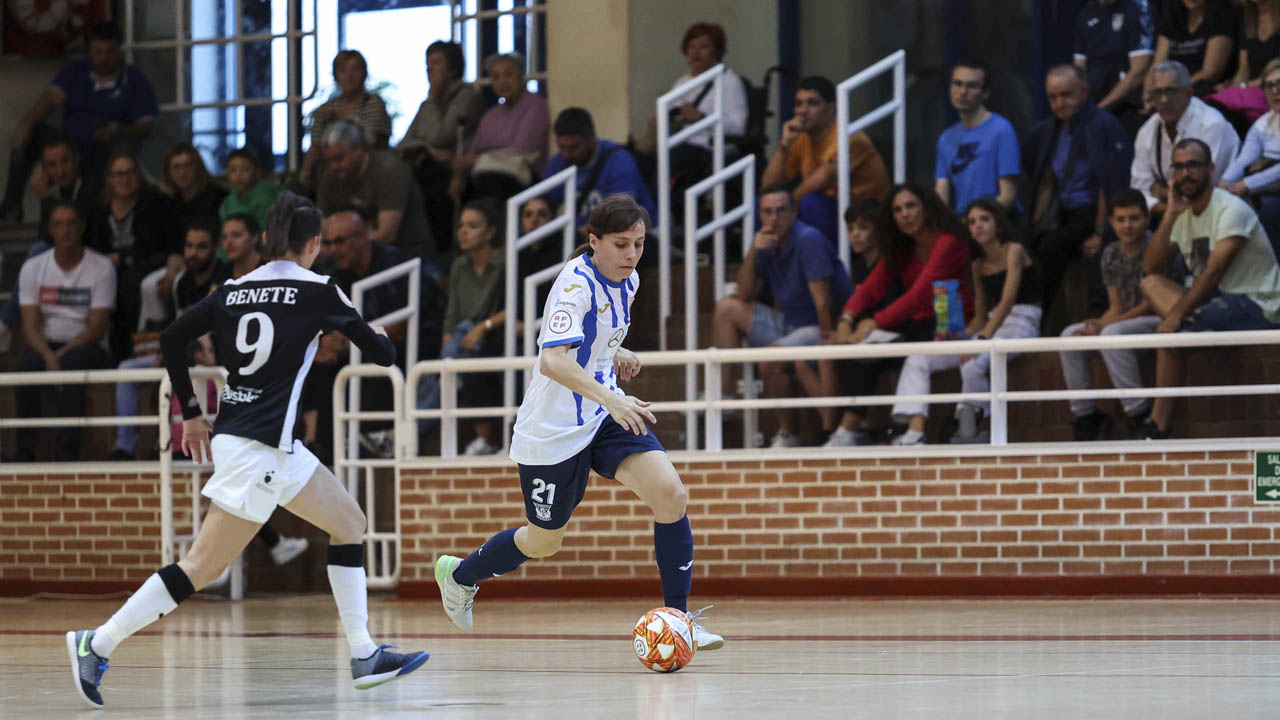 Tras dos fines de semana sin liga había ganas de fútbol sala, y así lo demostró el frenético arranque del derbi entre Móstoles y Leganés, con intensidad, ocasiones de gol y el primer tanto del partido, obra de Benete tras recoger un pase en profundidad, regatear a Miriam y anotar a puerta vacía.