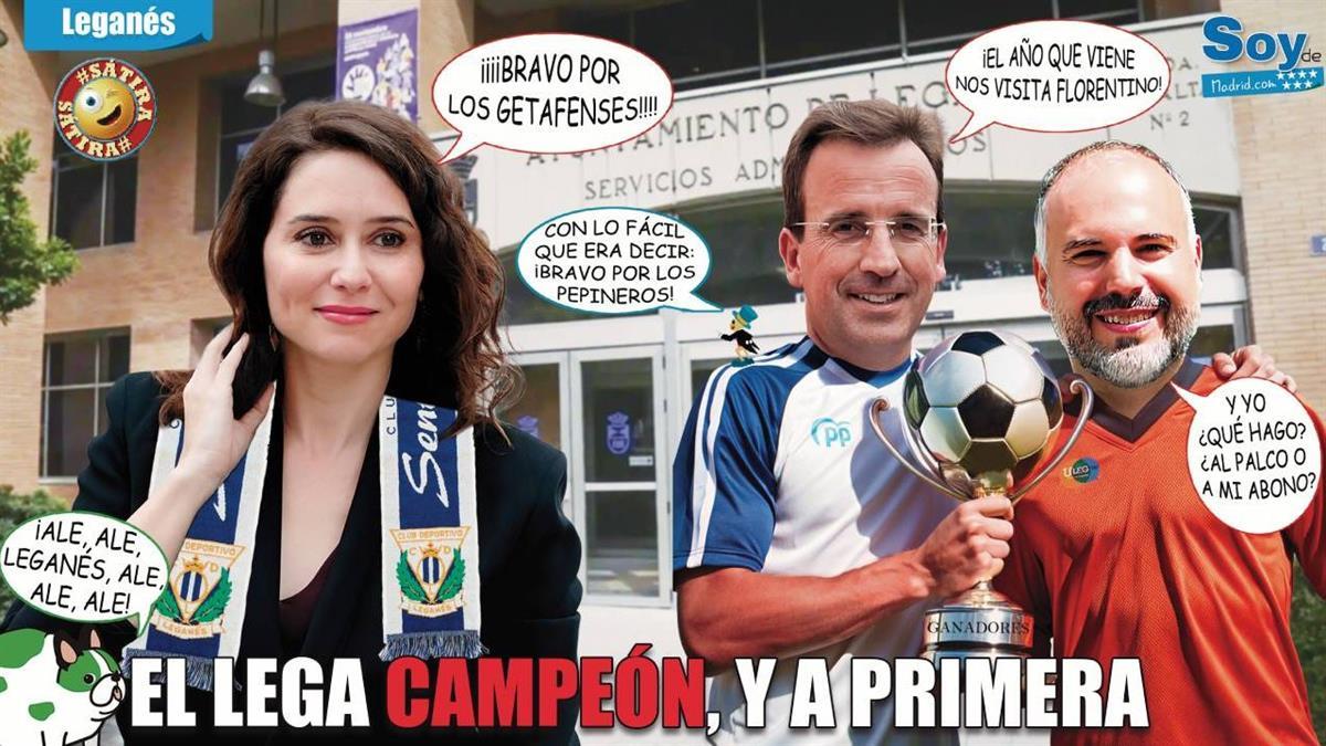 El ascenso del equipo leganense nos ha dejado quizás una de las imágenes de la temporada. El palco contó con la presencia, no solo del alcalde de Leganés, Miguel Ángel Rcuenco, sino también de la Presidenta de la Comunidad de Madrid, Isabel Díaz Ayuso. La presidenta, eufórica, comenzó a botar tras la petición de todo el estadio con: “¡Que bote Ayuso, que bote Ayuso!”