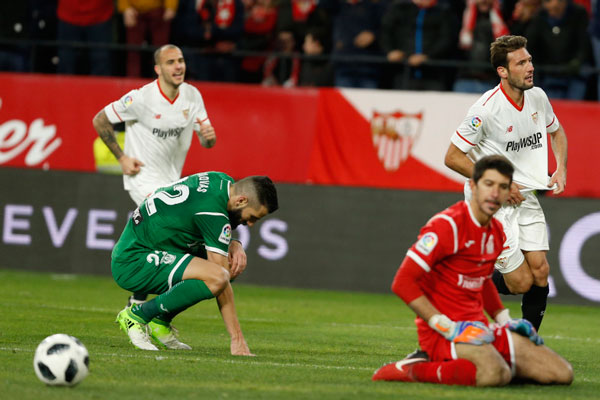 Solo Rubén Pérez, desde muy lejos, consigue inquietar a un Sergio Rico con poca confianza por su error de la ida. Y, como suele ocurrir cuando vas perdiendo, los minutos vuelan. Vuelan tanto, de repente, te ves en el minuto 88 y el ‘Mudo’ Vázquez hace el segundo con un sensacional gol.