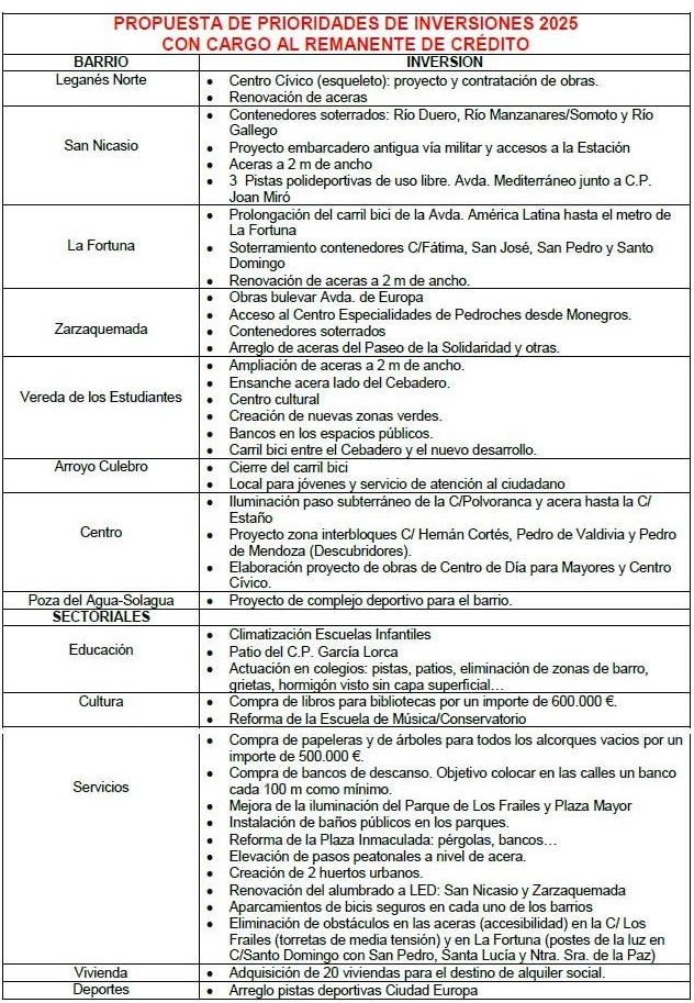Es una propuesta de necesidades urgentes para acometer e iniciar en este año 2025.