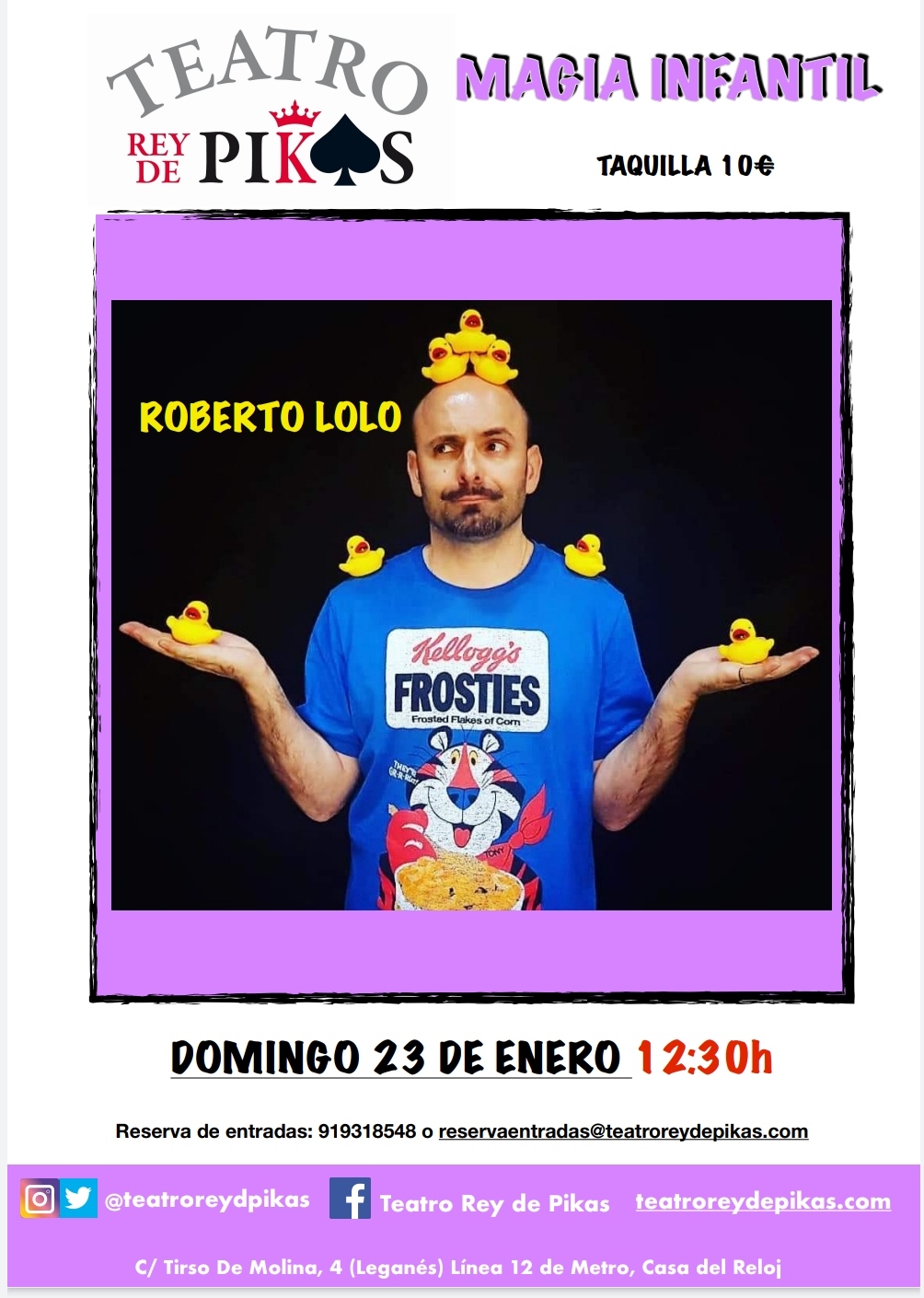 El Teatro Rey de Pikas presenta su programación para esta semana. Esta vez, la magia de Roberto Lolo visitará Leganés, los días 21, 22 y 23 de enero, con su espectáculo infantil y familiar, que traerá nuevos juegos.