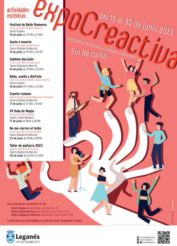 Ahora que se acerca el verano, estos talleres están llegando a su fin, por ello, es el momento de disfrutar del resultado final de todo lo aprendido durante los cursos y talleres con exposiciones y actividades escénicas que se desarrollarán en los centros municipales de Leganés entre este mes de mayo y el próximo mes de junio. En concreto, serán el Teatro Egaleo, el Centro Cívico Julián Besteiro, el Centro Cívico Rigoberta Menchú y el Centro Cívico José Saramago los centros encargados de acoger las exposiciones y las actuaciones de los alumnos y alumnas del programa CreActiva.