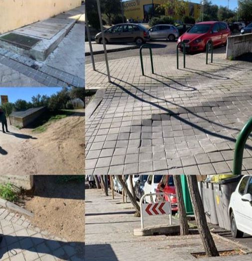 Destacan La zona desde la calle Garcilaso, la Avenida Doctor Fleming 3 y lateral del museo de Las Esculturas, donde se encuentran desniveles, hundimientos o zonas de terreno elevado sin acotar, causando que la acera acumule barro y tierra cuando llueve.