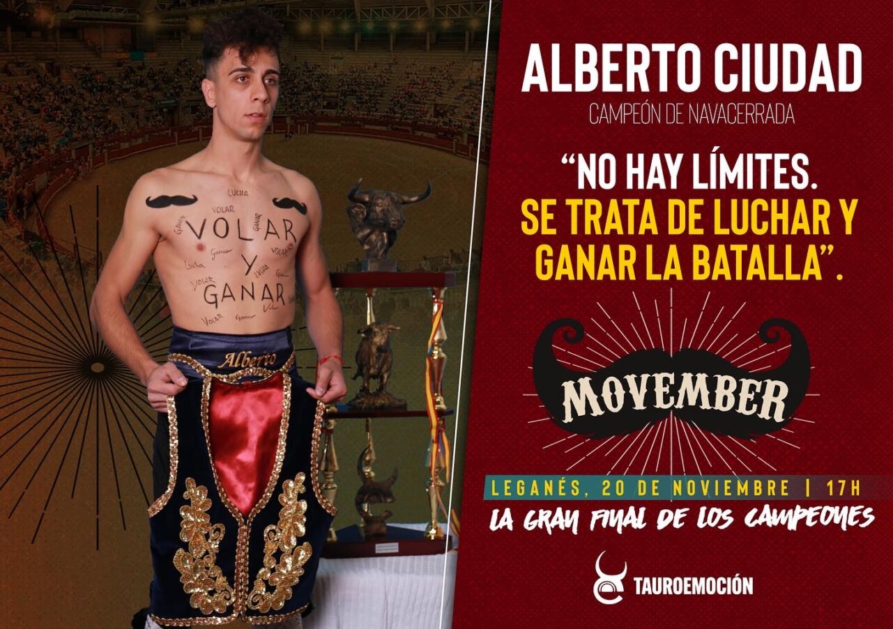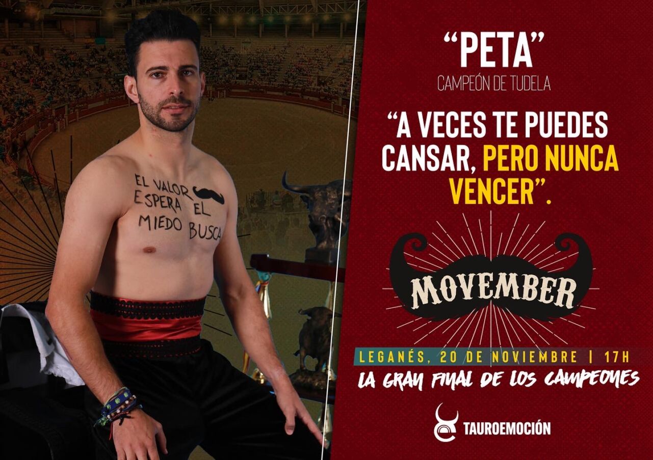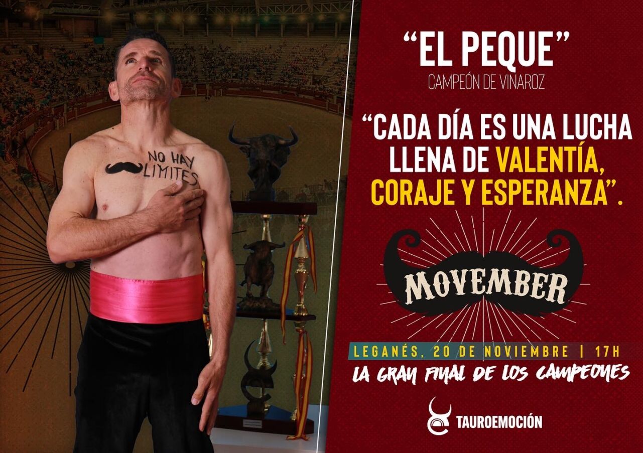 Movember es la contracción de los términos del inglés Moustache (bigote) y November (noviembre) con la intención de concienciar sobre temas de salud del hombre, tales como el cáncer de próstata o testículos. Los recortadores ponen, de esta forma, su granito de arena y contribuyen al auge de los bigotes solidarios. Con el torso desnudo con frases competitivas y de superación, los especialistas en recortes, quiebros y saltos se muestran ataviados con el traje goyesco del concurso nacional de recortadores y como atrezo, el flamante trofeo de campeón de 2021 de 'La Gran Final de los Campeones' que se celebra el próximo sábado. Se trata del elenco de recortadores, saltadores y quebradores más destacados del momento por sus triunfos durante la presente temporada.