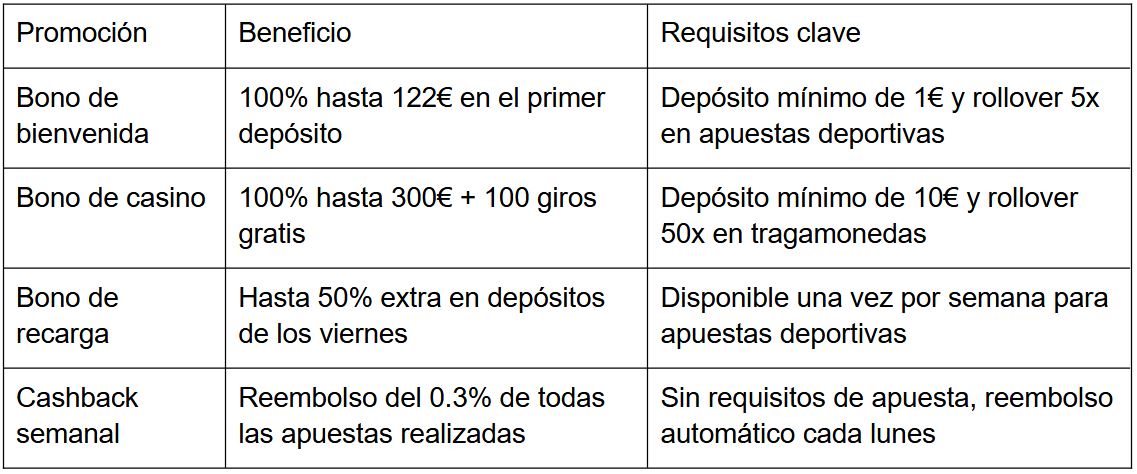 Las condiciones para liberar estos bonos pueden parecer exigentes, especialmente en la sección de casino, donde el rollover (cantidad que debes apostar antes de retirar ganancias) es bastante alto. Sin embargo, si planeas apostar regularmente, estas promociones pueden brindarte ventajas adicionales.