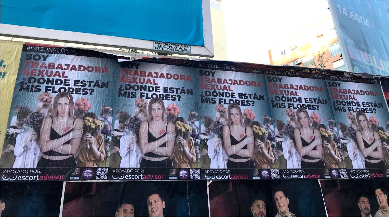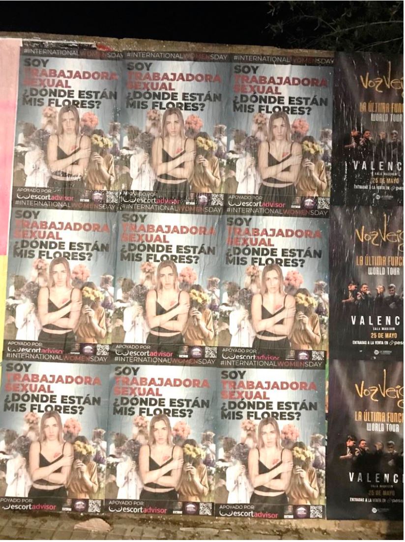 El 8 de marzo, Día Internacional de la Mujer, las ciudades de Madrid, Barcelona y Valencia amanecieron invadidas por carteles publicitarios de una campaña de sensibilización, iniciada por defensores del trabajo sexual, para poner de manifiesto la falta de derechos de las mujeres que deciden ser trabajadoras sexuales.