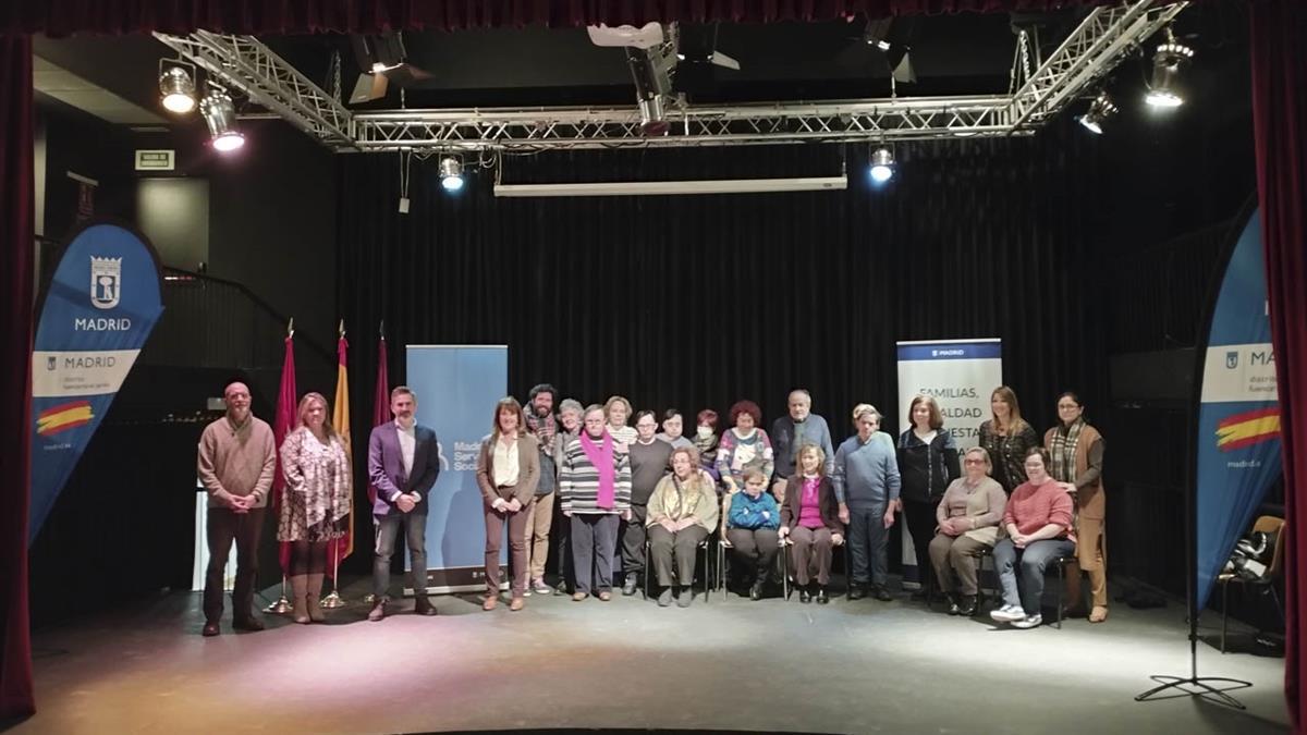 Al acto de presentación, que ha tenido lugar en el Centro de Mayores La Vaguada, han asistido el delegado de Familias, Igualdad y Bienestar Social del Ayuntamiento de Madrid, José Aniorte, la directora general de Down Madrid y una de las impulsoras de la iniciativa, Elena Escalona; el profesor de teatro de Down Madrid, Ramón Maqueda; y la voluntaria del Ayuntamiento, Nieves Sánchez.