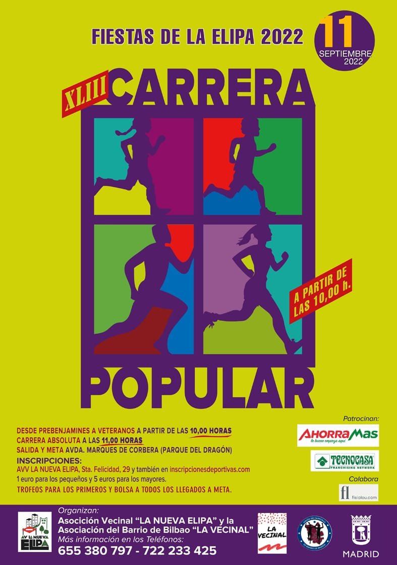 Una de las carreras populares más antiguas de Madrid está en peligro. A tres días de celebrarse, la Junta municipal de Distrito ha trasladado a la asociación vecinal que se ha encargado de su organización, la A.V La Nueva Elipa, de que posiblemente la 43ª edición de la Carrera Popular de las Fiestas de La Elipa sea suspendida ante la falta de los efectivos policiales suficientes.