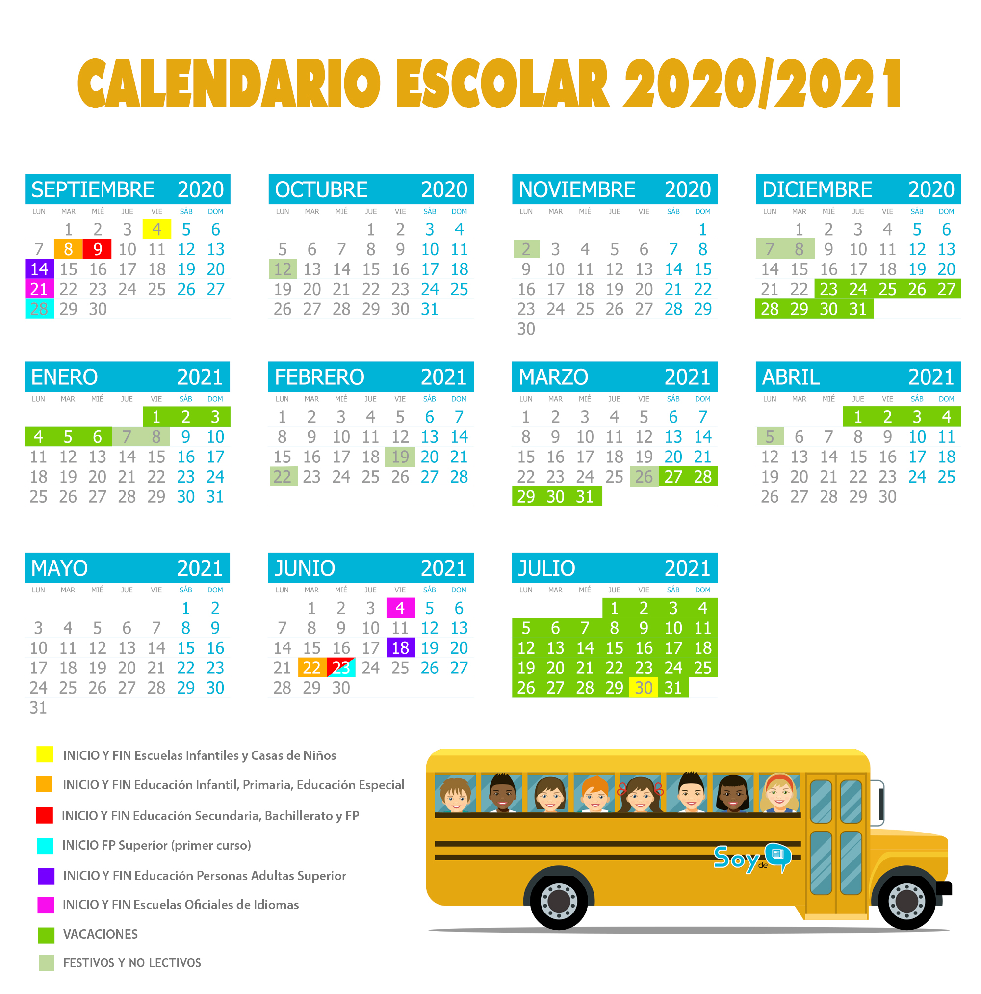 • Educación Infantil, Educación Primaria (1º, 2º y 3º) y Educación Especial comenzarán el día 8 de septiembre de 2020 y finalizarán el 22 de junio de 2021.